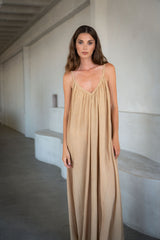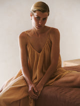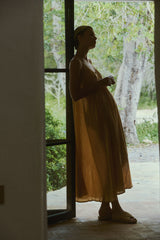 Swathes of beautiful organic crinkled cotton will take your effortlessly through endless summer days and nights. Your go-to floor skimming favourite. A live in staple for your small holiday capsule wardrobe. Roll it up in your bag with your favourite bikini, eluding sophistication and freedom of movement.