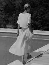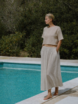 Our Lamu T is crafted in soft handwoven cotton gauze. Raw edge finishes and an oversized boxy fit gives this relaxed silhouette a raw simplicity that makes it the perfect go to T for Spring & Summer.