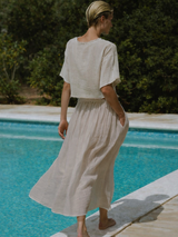 Our Lamu T is crafted in soft handwoven cotton gauze. Raw edge finishes and an oversized boxy fit gives this relaxed silhouette a raw simplicity that makes it the perfect go to T for Spring & Summer.