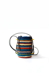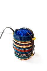 Our Lisi Stripe bag is handcrafted in Ghana. It is made of sustainable, woven raffia. This bucket shape bag features leather detailing, linen lining, interior pocket and drawstring closure. This versatile bag can be worn over the shoulder or across the body.