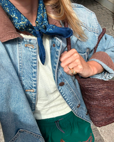 We love the 50cm x 50cm  knotted around our necks, bandana style. They also look great in our hair, on our wrists or around the handle of your handbag, old or new.