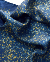 Ink blue with flecks of mustard and sky blue.