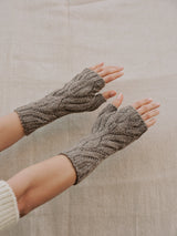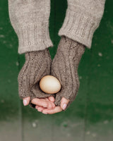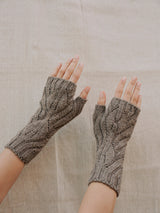 Detail - The Wyre Wrist Warmers are one size, with our bud & vine stitch both inside and out, but without pointelle on the inside for durability.