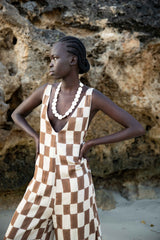 Introducing a summery staple to your wardrobe. The Sarabi onesie features a loose silhouette with adjustable straps and a drawstring waisted back so you can style her as you like.