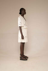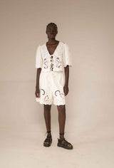 Made from soft unbleached cotton canvas, the sailort shorts have a loose and relaxed fit with a drawstring waist. Featuring intricate cut out embroidery motifs along the hem and around the side slit these shorts will easily become a summer staple. Pair them with any of the matching cut out embroidery tops to complete this seasons favourite look.