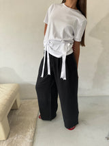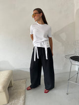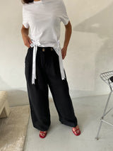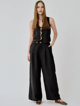 The matching Celeste high-waisted linen trousers are ankle-length and pleated with slant pockets. Mix and match these pieces with the rest of your wardrobe for more versatility.