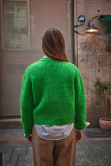 CHARLOTTE Round-Neck Cardigan in Merino-Mohair Wool - Parrot Green