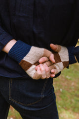 A soft lambswool fingerless glove in a bold check design. Keep your hands warm while leaving your fingers free to use keys, phones, or tools without taking them off.