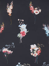 The black fabric features a detailed floral print originally hand-painted by designer Jessica Kayll before being digitally printed onto the fabric.