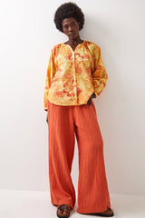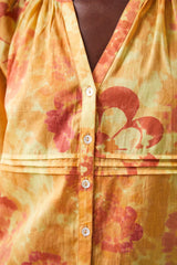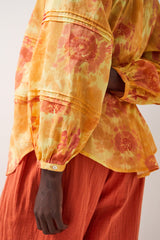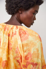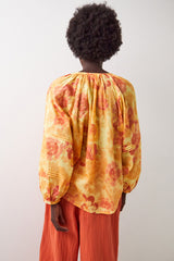 The Nikki Top is crafted from lightweight cotton voile in a painterly print. Designed with raglan shoulders and soft gathers along the neckline and shoulders, it drapes beautifully with an easy, relaxed feel. Pintuck detailing adds subtle texture, finished with mother of pearl buttons.