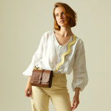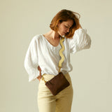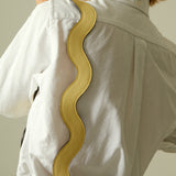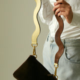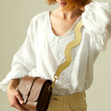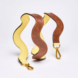 Inspired by art and architectural fluency, meet this playful Squiggle - a bold and joyful handmade leather shoulder strap that will style up your handbag, making a unique contemporary statement piece that will turn heads. Featuring high quality brass clips, you can clip on, clip off with ease to wear over the shoulder or cross-body. Not a straight line in sight. Skilfully cut by hand in our Kent workshop.