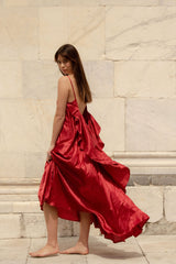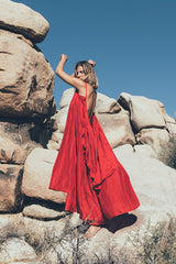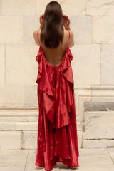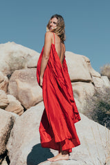 Nomadic locations inspire the natural textures and dramatic silhouettes that define A Perfect Nomad's collections. Their Signature Syros dress has been handcrafted in India, cut from 100% Peace silk that falls to a floor-sweeping tiered hem with ultra-low back. Hand-dyed in a beautiful bare golden skin shade.