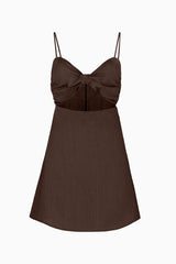 The Gabriella Mini Dress in chocolate is crafted to a feminine silhouette from breathable, Belgian linen. It comes with thin straps and features an adjustable front tie element, creating an alluring cutout detail. It's cut to a mini length and has a center back slit for extra comfort.