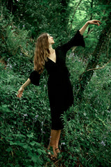 The Starling dress is a beautiful midi dress with ruffled sleeves, which can be paired with sandals or converse to dress down for summer days, add heels for a party or tights and layers for the autumn and winter months.