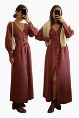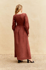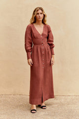 The Gertrude Linen Maxi Dress in terracotta