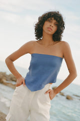 Replace your favourite tee with our Ida Scarf Top in Klein blue. This triangle-shaped bandana can be worn as a top tied at the center of your back or as a neck or head scarf. It's cut from 100% Belgian linen and was made in Portugal.