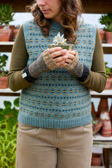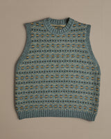 This soft, woollen vest features a striking Fair Isle pattern, inspired by the traditional knitting techniques of the Shetland Islands. The intricate design brings together classic heritage and modern style. This colour way showcases cool earthy tones of Teal, Gold and Spruce.