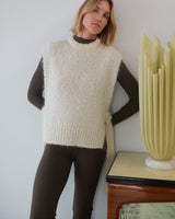 Our Kalvos Vest 2.0 is here, bringing all the sophistication of the original but with added softness. You asked, we delivered — comfort has a new name with our mohair and eco wool blend, offering cloud-like softness and breathability. Perfect for layering through winter and in-between seasons. And of course, we've kept the adjustable side ties with metal buckles and the hip-length front, and the slightly longer back that you loved on our OG Kalvos. This design still pays tribute to the rolling Lithuanian hills it was named after. Runs true to size. Recommended to take your normal size.