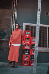 AUGUSTINE Flare Skirt in Merino Wool - Coral