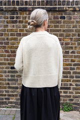 With the same relaxed silhouette as the sweater, the Raye cardigan has a dropped shoulder, boxy shape and a straight hem. The modern design combines heritage knitwear details at the seams inspired by English gansey jumpers and deep ribs at the hem and cuffs. A versatile piece that works well dressed up or down and pairs well with skirts, trousers or dresses.