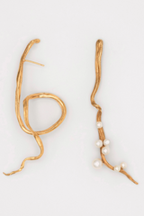 These earrings draw inspiration from the abundant, twisting branches of a forest, reaching outward in graceful forms that evoke the layered beauty of a vibrant canopy. Each earring flows in organic, vine-like shapes. Delicate pearls are artfully set along the curves, resembling clusters of fresh blossoms clinging to the branches.