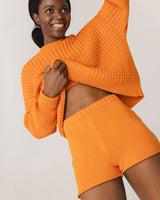 Delčia sweater and Pieva shorts are crafted from OEKO-TEX® certified organic cotton, offering a conscious and comfortable fit.