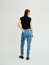 Clover Wool Striped High Waisted Organic Mom Fit Jeans