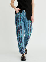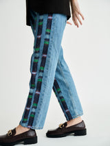 These striped jeans pay homage to Yorkshire with stripes made from 100% woollen blankets from up north. The super soft stripes are high-quality offcuts with 3 stripes on the front of both sides of the leg and one at the back of both legs.