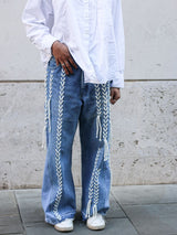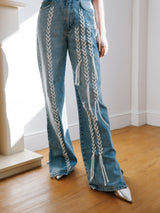 High Waisted Upcycled Thread Wide Leg Jeans