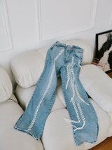 Our popular Thread Flare jeans have been reconstructed from clothing that was once wastage, giving them a second life by our talented design team.