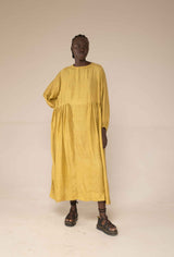A season staple and a dress that can be worn to any occasion. The Balloon dress features a voluminous free size silhouette with a decorative loose gathered waist seam, pockets, a tie back that can also be worn at the front and full bell sleeves.