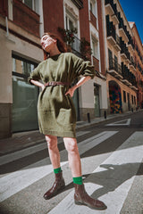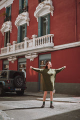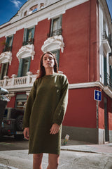 PERRINE Sweater Dress in Merino Wool - Olive Green