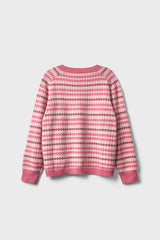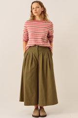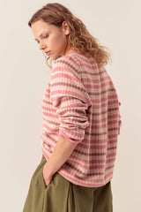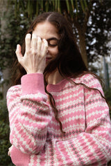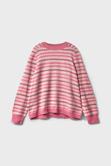 A fine knit crafted from a soft cashmere/alpaca blend, featuring an all-over fairisle design in tonal dusty-rose and contrast olive. Ribbing at the neckline and cuffs and partial raglan sleeves contribute to a relaxed, oversized fit.