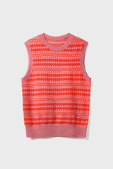 The Becky Alpaca and Cashmere Fairisle Tank is a soft, sleeveless knit designed for effortless layering and standout cosy style. Crafted from a luxurious alpaca and cashmere blend, this women’s fair isle knit tank features a rich all-over Fair Isle pattern in dusty-rose and clementine tones that brings heritage texture to modern wardrobes. Finished with ribbing at the neckline, armholes and hem, it’s a versatile piece that pairs beautifully with shirts, tees or knits for seasonal layering.