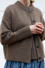Constructed using the traditional knitting process of fully fashioning whereby each piece of the cardigan is knit separately and then linked together and finished by hand. All within a few miles of our studio.