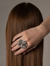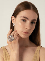 This bold ring carries the symbolic power of the Origin collection. Its central spiral represents the journey back to ourselves and inner renewal. The form echoes the timeless beauty of folk motifs and the essence of natural feminine strength.