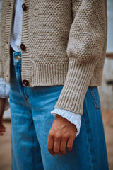 ANAIS Puff Sleeve Cardigan in Merino Wool - Beige