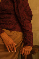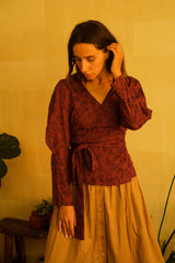 Introducing our Berry Wrap Top, a stylish yet easy-to-wear piece perfect for layering. The unique stitch detail on the sleeves adds a touch of volume and character, while the rich berry hue gives it a warm, fall-ready vibe.
