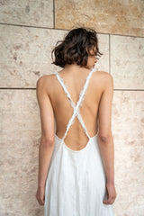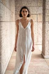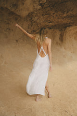 Crafted from pure organic linen our Bora Bora is A Perfect Nomad's ode to the perfect summer dress. The deep plunging neckline, front slit and low back with frayed cross back straps make this sensual stand out piece one to treasure and pull out the bag for every cute occasion. Take it to the beach or to a wedding or anything in between.