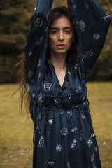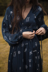 The Cleo Midi Dress is a celebration of style and comfort, designed to enhance your natural beauty. With romantic sleeves that cascade gracefully, it exudes a touch of vintage charm. The bodice cinches at the waist, offering a tailored fit that accentuates your silhouette, and yet, it can be worn loosely for a more relaxed and carefree look.The versatility of this dress allows you to transition effortlessly from daytime events to evening affairs.