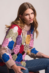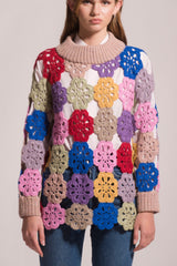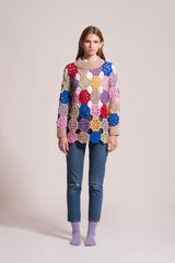 Featuring hand crocheted multi-coloured flowers its a showstopper piece for a casual or elegant look.