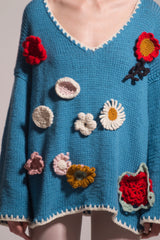 Featuring hand crocheted multi-coloured flowers its a showstopper piece for a casual or elegant look.