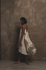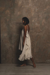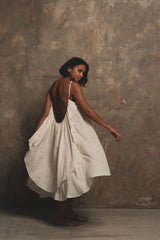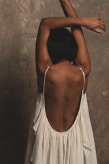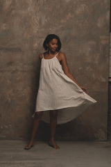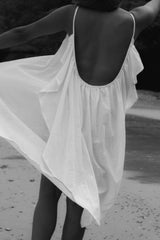 A dream of a summer dress. Crafted in A Perfect Nomad's handwoven and beautifully textured raw organic cotton. Inspired by the brand's iconic Syros dress, her shorter sister Grace dress features the same effortless free flowing silhouette and dramatic ultra low sweeping winged back. The perfect little statement dress and transitional piece to take you from City to Shores.