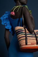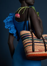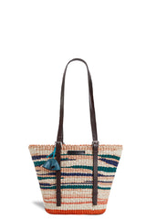 The ‘Hawa Tie Dye' bag is crafted from sustainable raffia detailed in a rainbow striped effect in a classic style for a bold flourish of some kind. This medium tote bag with long leather handles that go down on the front and back sides will accommodate all your essentials whilst being on trend in a laid-back way. It features an interior pocket and is accentuated with a leather tassel. Carry it on city streets or sandy beaches.