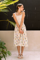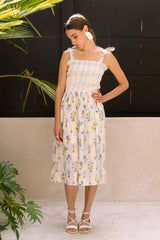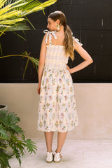 The gorgeous smocking dress made from upcycled fabric, featuring a stunning healing herbs print that's sure to make you feel like a goddess. The vintage vibe of this smock will transport you back in time, while the nourishing herbs on the print will remind you to take some time for yourself and enjoy the simple things in life. Our smock is perfect for a day out in the sun or a lazy afternoon spent lounging around at home. The loose, comfortable fit means you can move around freely without feeling restricted, and the smocking detailing adds a touch of elegance and femininity. But that's not all - by choosing a dress made from upcycled fabric, you're not only doing your part to protect the environment, but you're also making a statement about your commitment to sustainability and ethical fashion.
