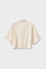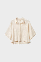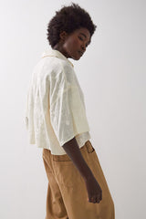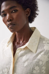 Our Hecate Ivory Embroidered Shirt features a delicate floral chain stitch embroidery. Textured crosshatch cloth, boxy fit and cropped length.