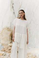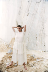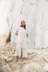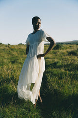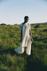 The Her Own Hero dress is crafted from layers of textured handwoven organic cotton. The romantic free flowing silhouette brings ease and a soft sensual beauty.