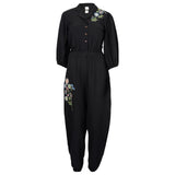 Step into quintessential style with our black jumpsuit, a piece that offers the utmost comfort and a luxurious feel with its double-layered cotton. This jumpsuit is designed to make you feel fabulous and cozy any day.The intricate embroidery, perfectly placed on the silhouette, adds an exquisite touch of wabi-sabi, where imperfection meets beauty. It's a truly easy-going piece, allowing you to enjoy the entire day in comfort and style.