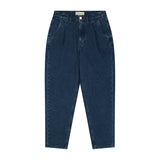 Loose Bailey, a barrel silhouette. Carrot Fit. High Waist. Tapered Leg. Zip Fly. Satin-finish Silvertone button.