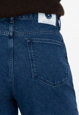 Non-stretch denim: 40% post-consumer recycled cotton, 60% organic cotton.